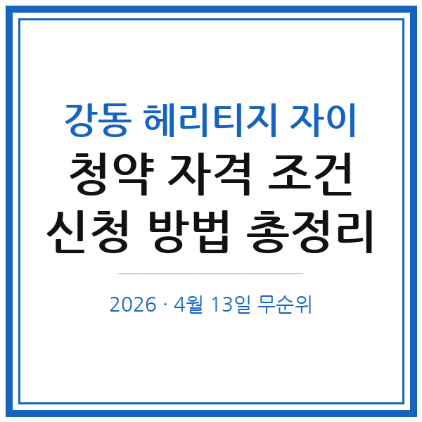 강동 헤리티지 자이 청약은 4월 13일 단 하루만 접수가 진행되는 만큼 자격 조건 확인과 청약홈 사전 준비가 당락을 가를 수 있다. 서울 거주 무주택 세대주라면 지금 바로 청약홈 로그인 환경과 공인인증서를 점검해 두자. 시세차익 분석과 입지 호재는 별도 포스팅에서 이어서 확인할 수 있다.